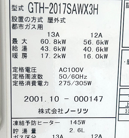 私が今使っている給湯器は、2001年10月製。もう24年になります。